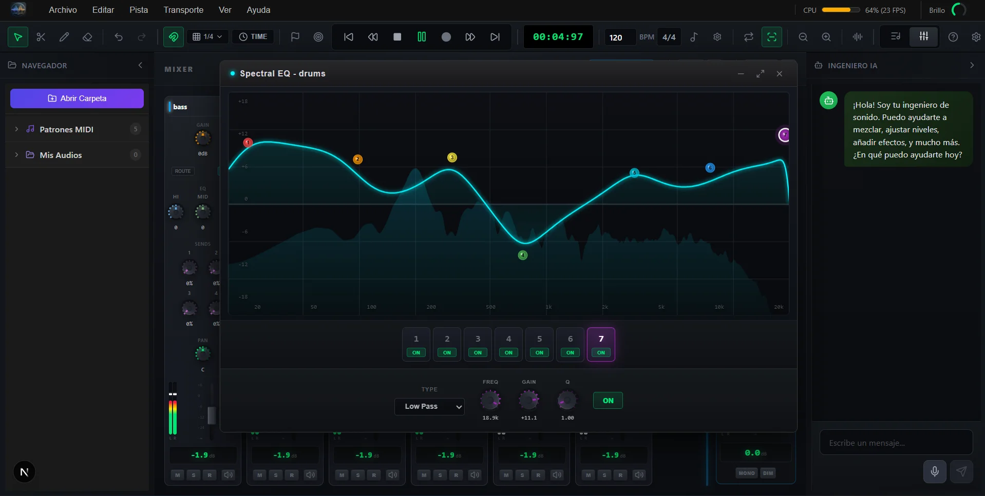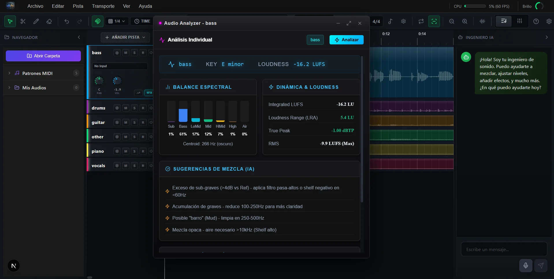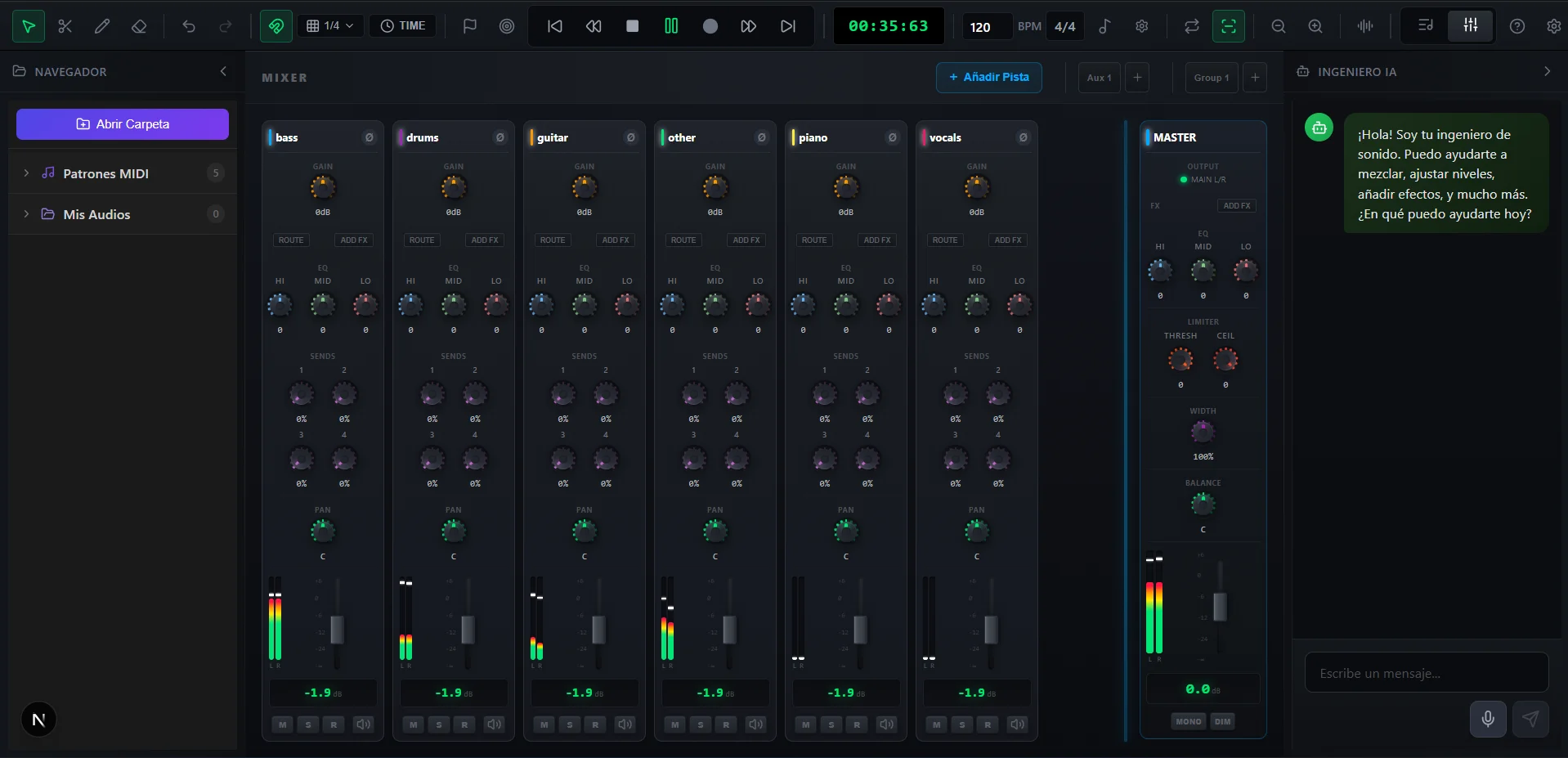 El DAW profesional con Ingeniero de Sonido IA. No es solo una herramienta para grabar, es tu copiloto creativo. Potencia tu creatividad con asistencia inteligente en tiempo real.