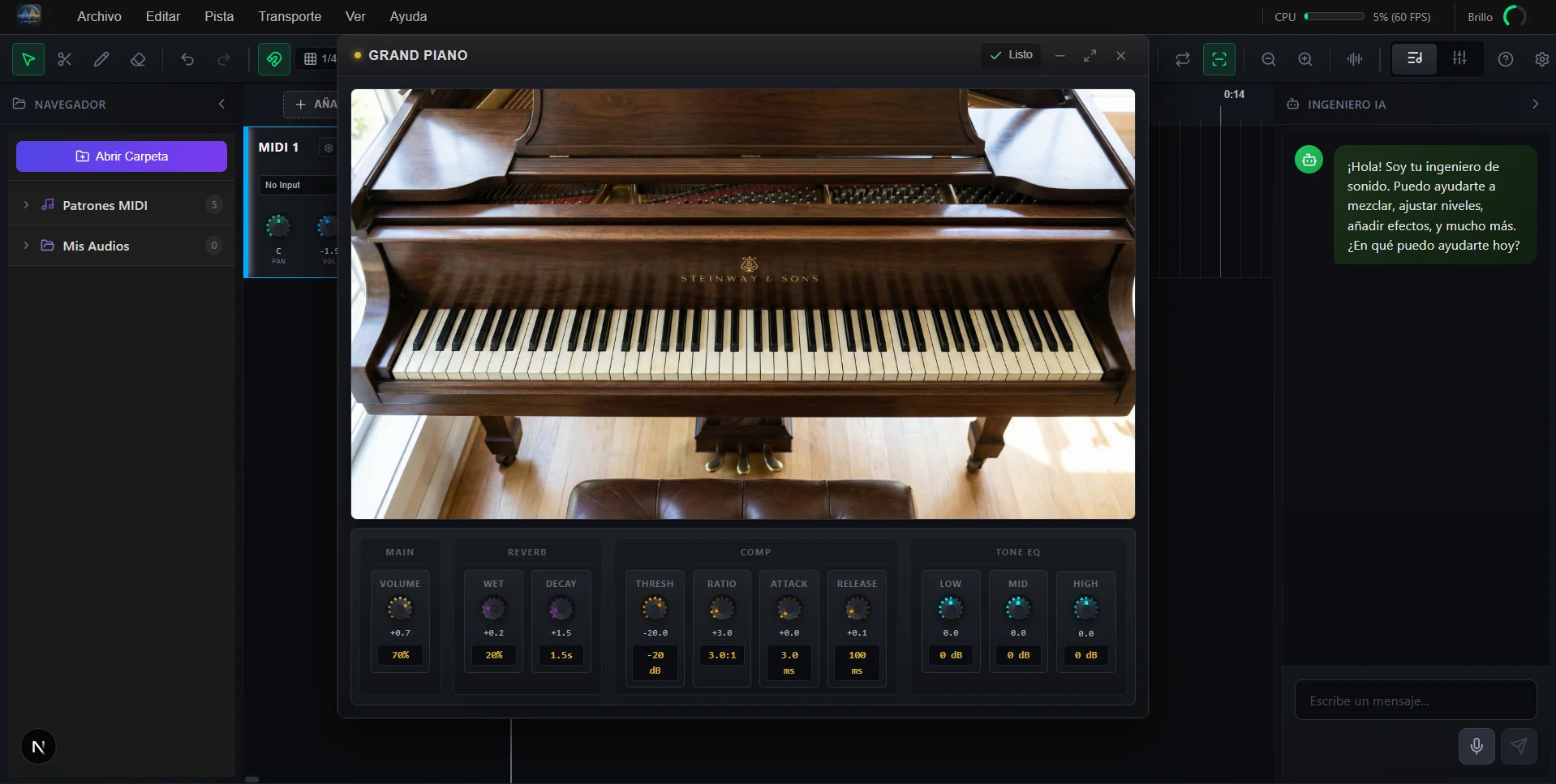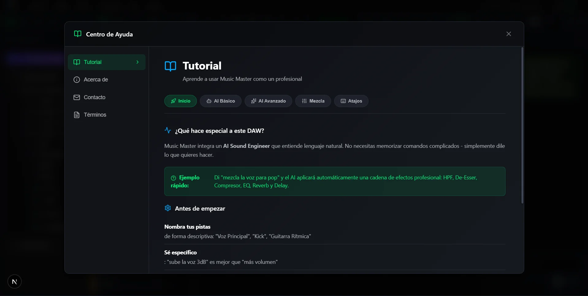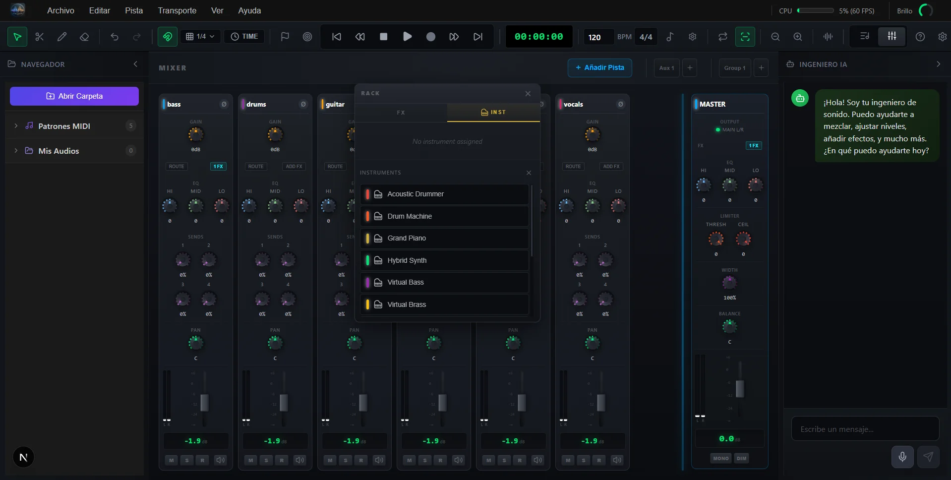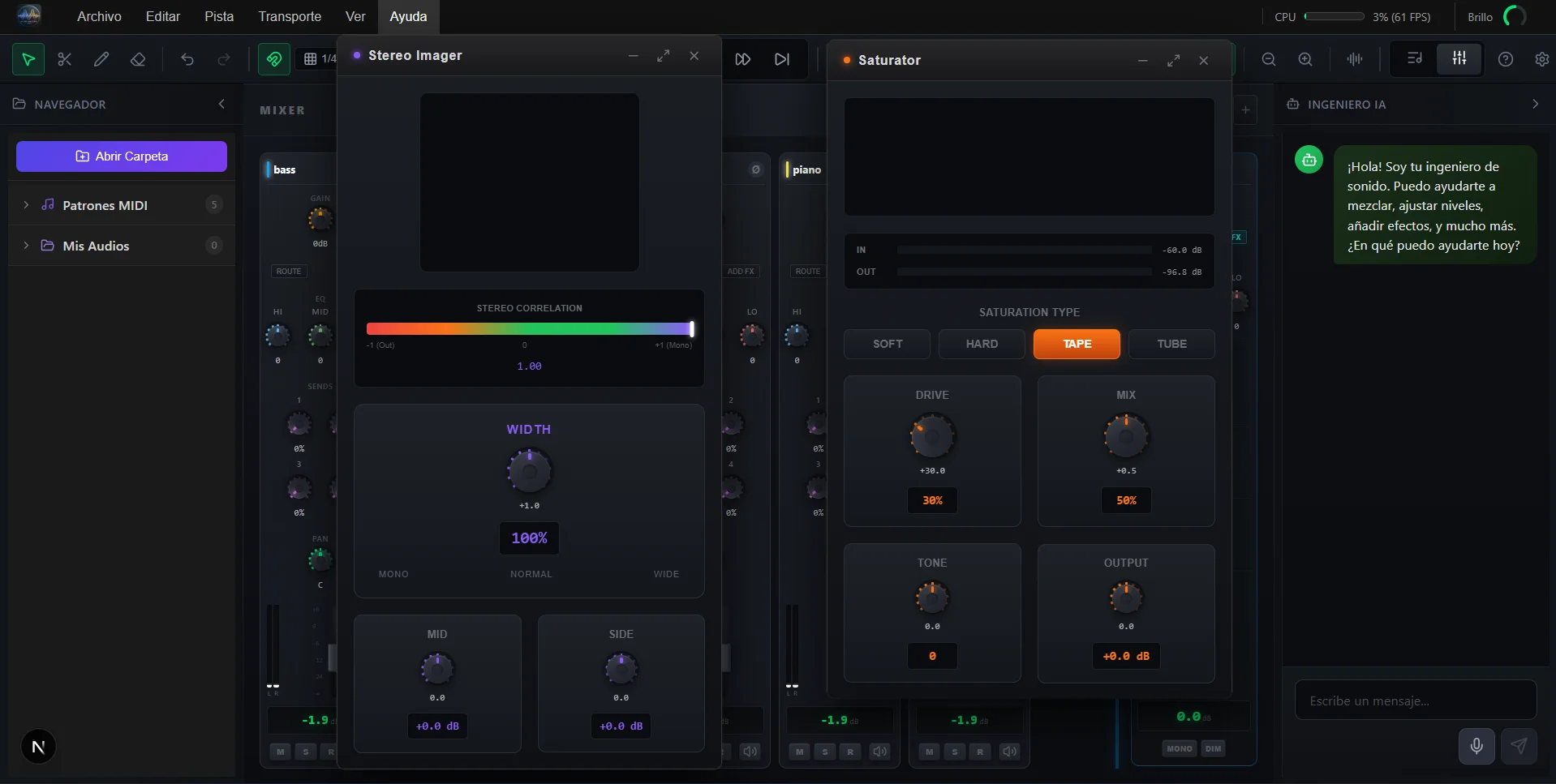 El DAW profesional con Ingeniero de Sonido IA. No es solo una herramienta para grabar, es tu copiloto creativo. Potencia tu creatividad con asistencia inteligente en tiempo real.