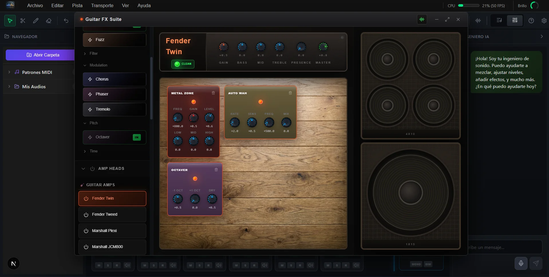 Simuladores de amplificadores y gabinetes de alta gama con respuesta de impulsos (IR) de estudios legendarios.